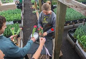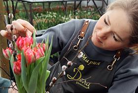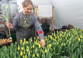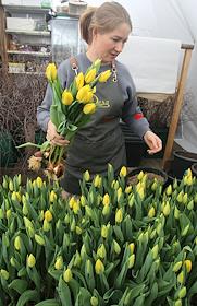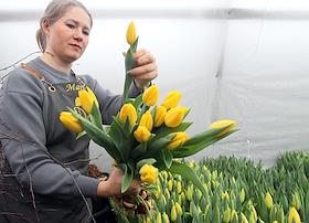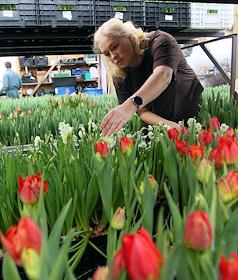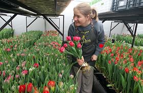 Private flower farm of the "Flower Affairs" company. Genre photography. Tulip harvest in the…