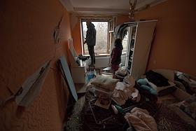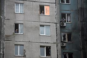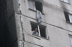 Обстрел многоквартирного дома в Ленинском районе Донецка, в результате которого погибли два человека.
