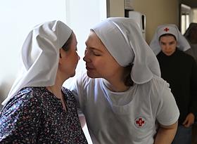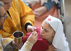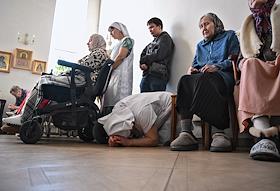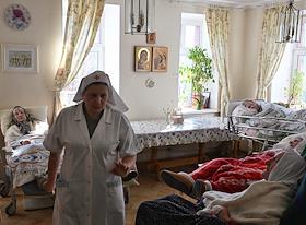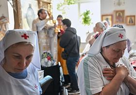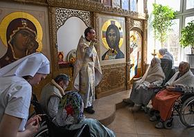 Свято-Спиридоньевская богадельня православной службы "Милосердие". Служба в храме.