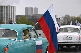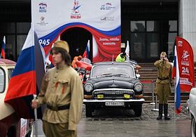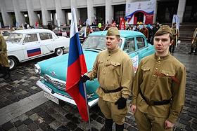 Акция "Автопробег Победы", организованная партией "Единая Россия", с участием ретроавтомобилей марки…