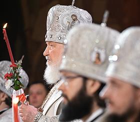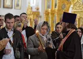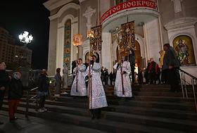 Праздничное Пасхальное богослужение в кафедральном соборном храме Христа Спасителя.