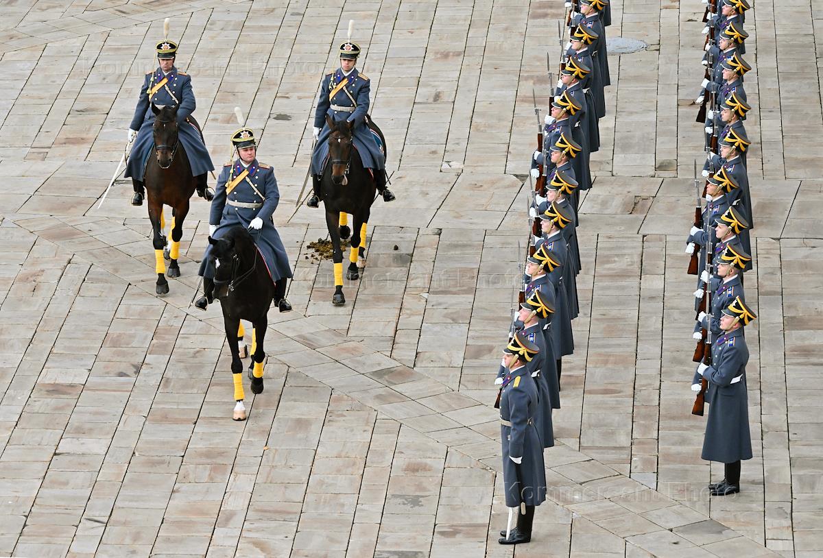 Церемония развода пеших и конных караулов Президентского полка ФСО России на Соборной площади…