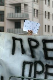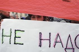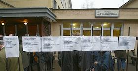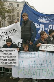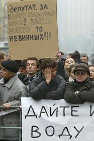 Митинг родственников заложников, находящихся в здании театрального центра.
