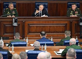 Расширенное заседание коллегии Министерства обороны России в Национальном центре управления обороной.