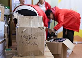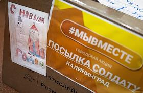 Центр по сбору и сортировке гуманитарной помощи акции "Посылка солдату" в Калининграде.